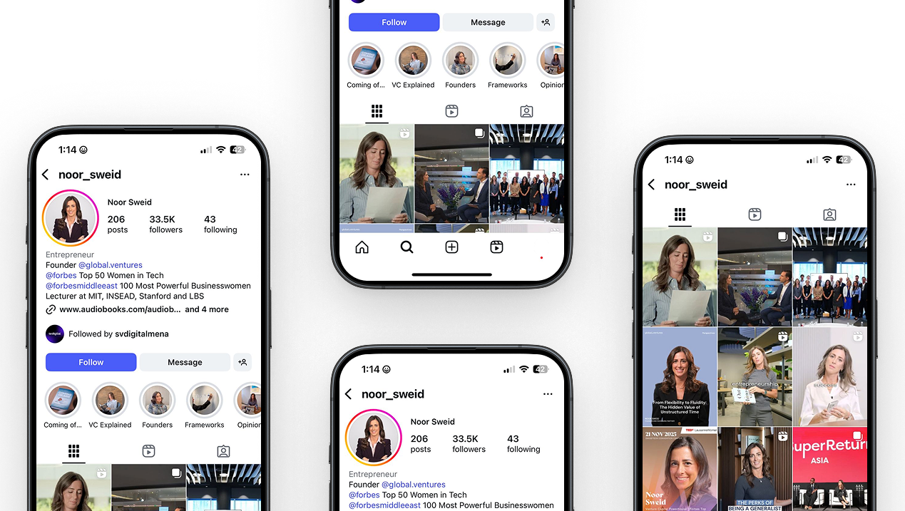 Noor Sweid, a leading figure in MENA’s startup ecosystem, wanted her digital presence to reflect her expertise, insights, and leadership. Her bilingual Instagram pages (English & Arabic) lacked consistency in video format, visual identity, and storytelling, resulting in fragmented engagement and underutilized reach.